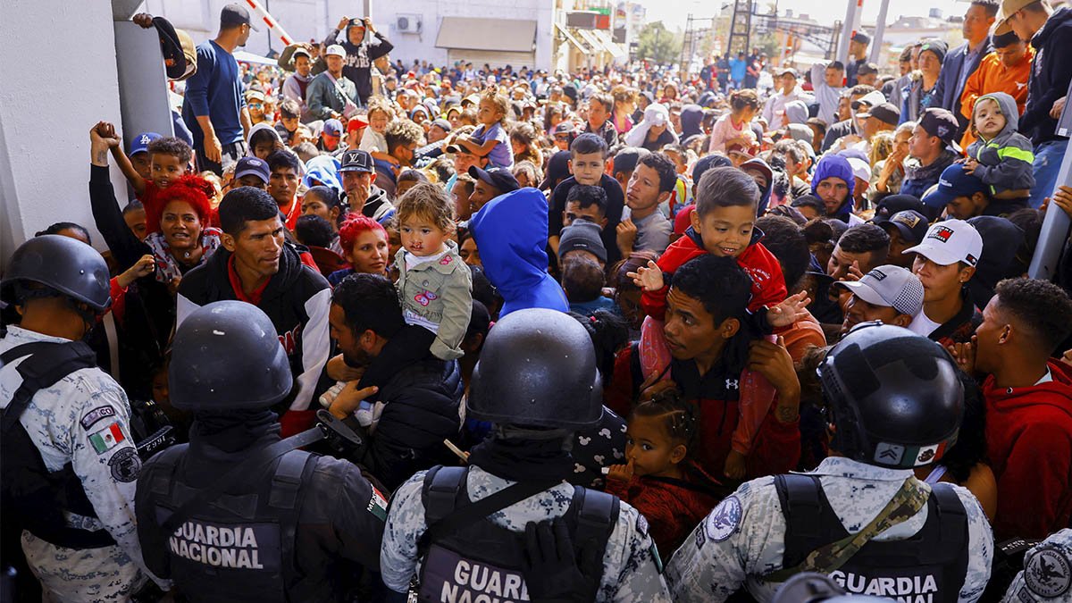 Videos en redes sociales, muestran a cientos de migrantes intentando cruzar la frontera por la fuerza en el Puente Internacional…
