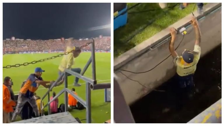 Aficionado intenta invadir la cancha y termina accidentado