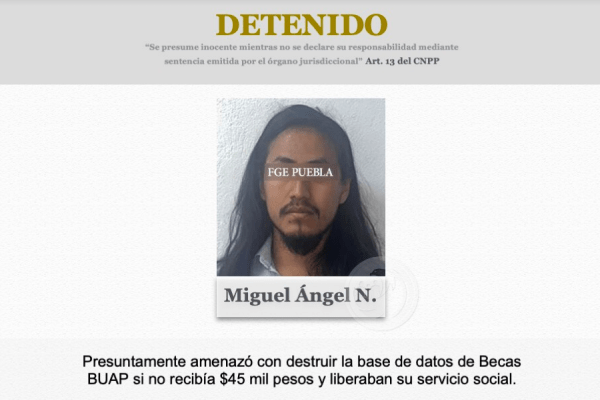 Ante este hecho, la Fiscalía de Puebla detuvo a Miguel Ángel “N” después de que la trabajadora de la BUAP lo denunciara formalmente por el delito de extorsión.
